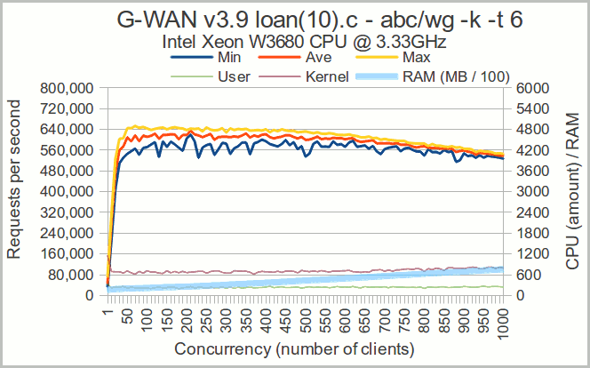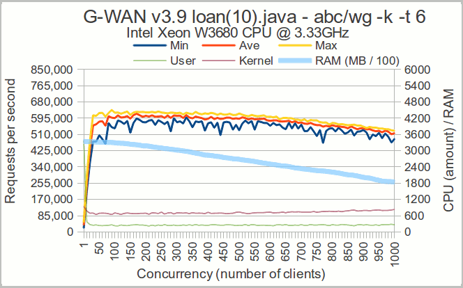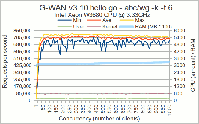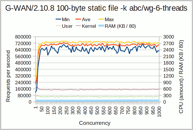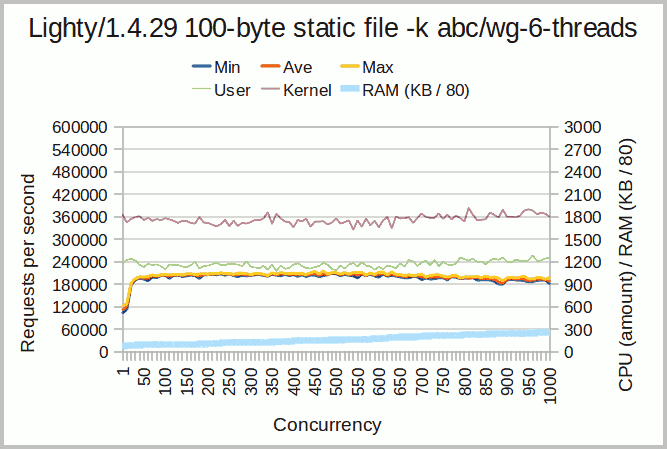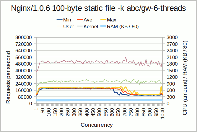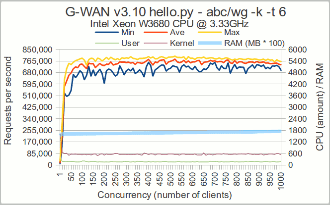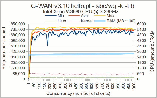Despite the fact that G-WAN (2009) supports 18 programming languages (no competitor has ever done that) G-WAN was much faster (for the same static file or C#/Java/Scala/Javascript programs) despite using much less RAM and CPU resources than others: